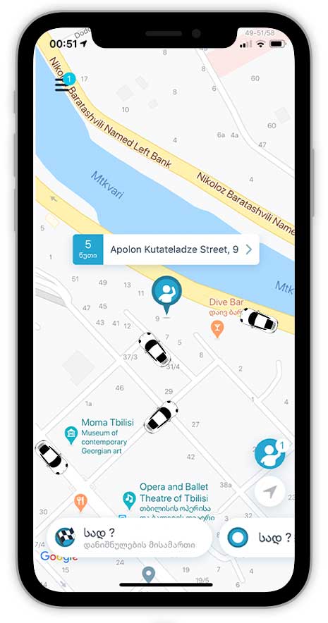 მიუთითეთ დანიშნულების საწყისი და საბოლოო მისამართი, და მიიღეთ ინფორმაცია მგზავრობის ღირებულების შესახებ.